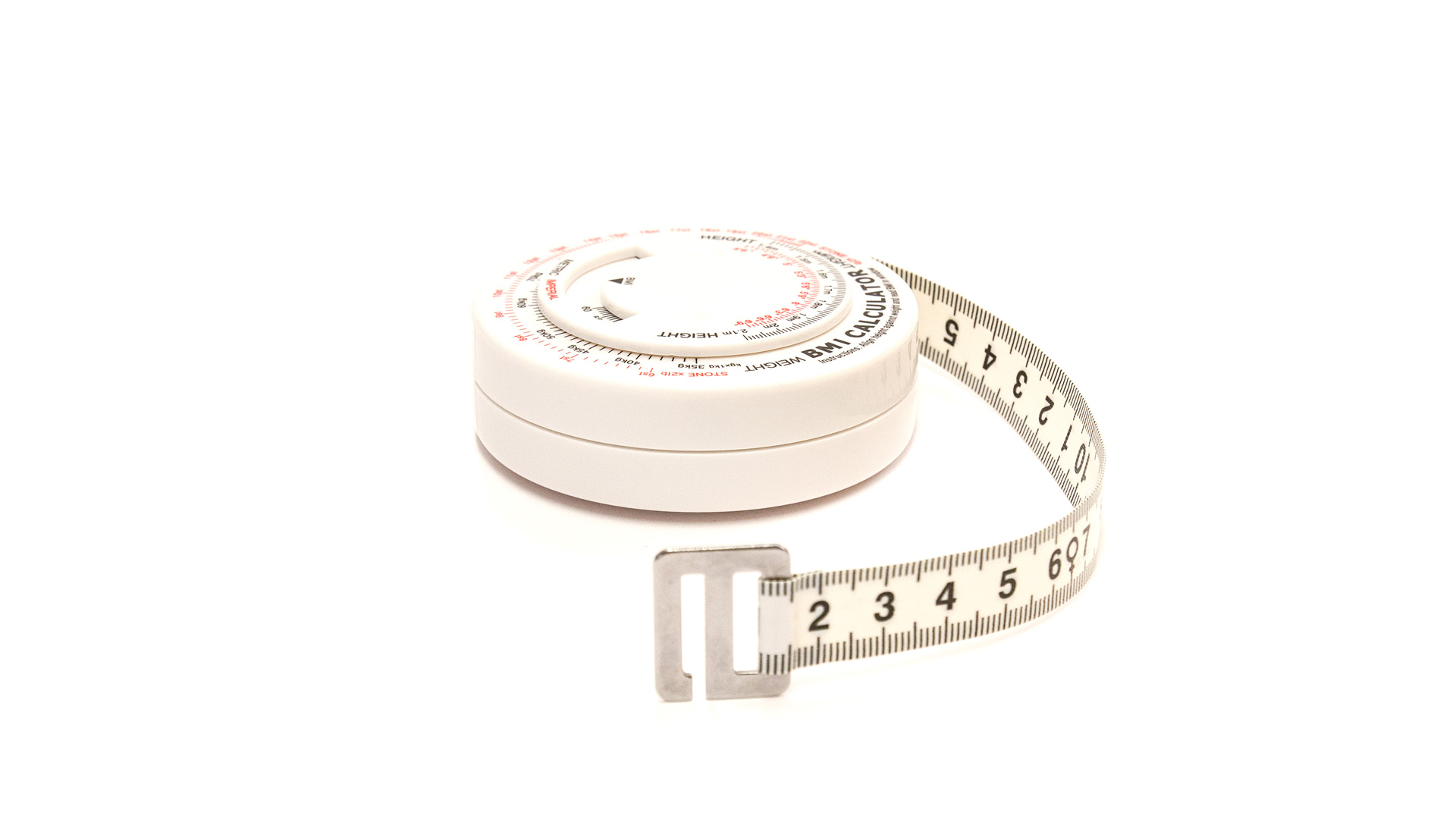 Maßband zur Körpermessung und Messung des BMI, weiß.