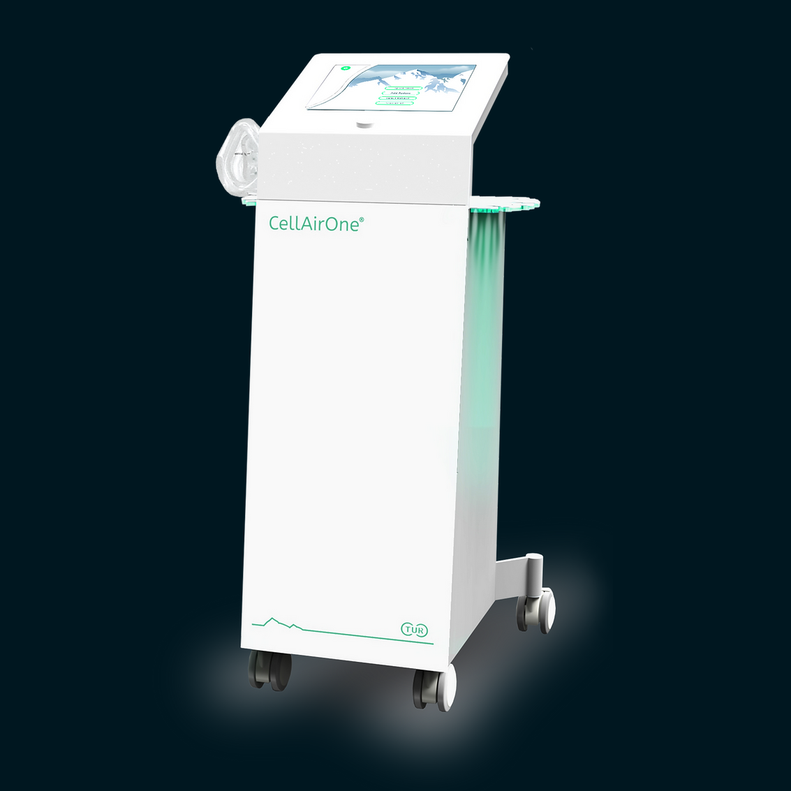 CellAirOne ist ein Gerät zur Durchführung einer intermittierenden hypoxischen Therapie im Wechsel mit entweder hyperoxischen oder normoxischen Phasen. Es bietet auch die Möglichkeit, eine Überwachung der Herzfrequenzvariabilität (HRV), einen Body Oxygen Level Test (BOLT) und einen Hypoxie-Test durchzuführen.