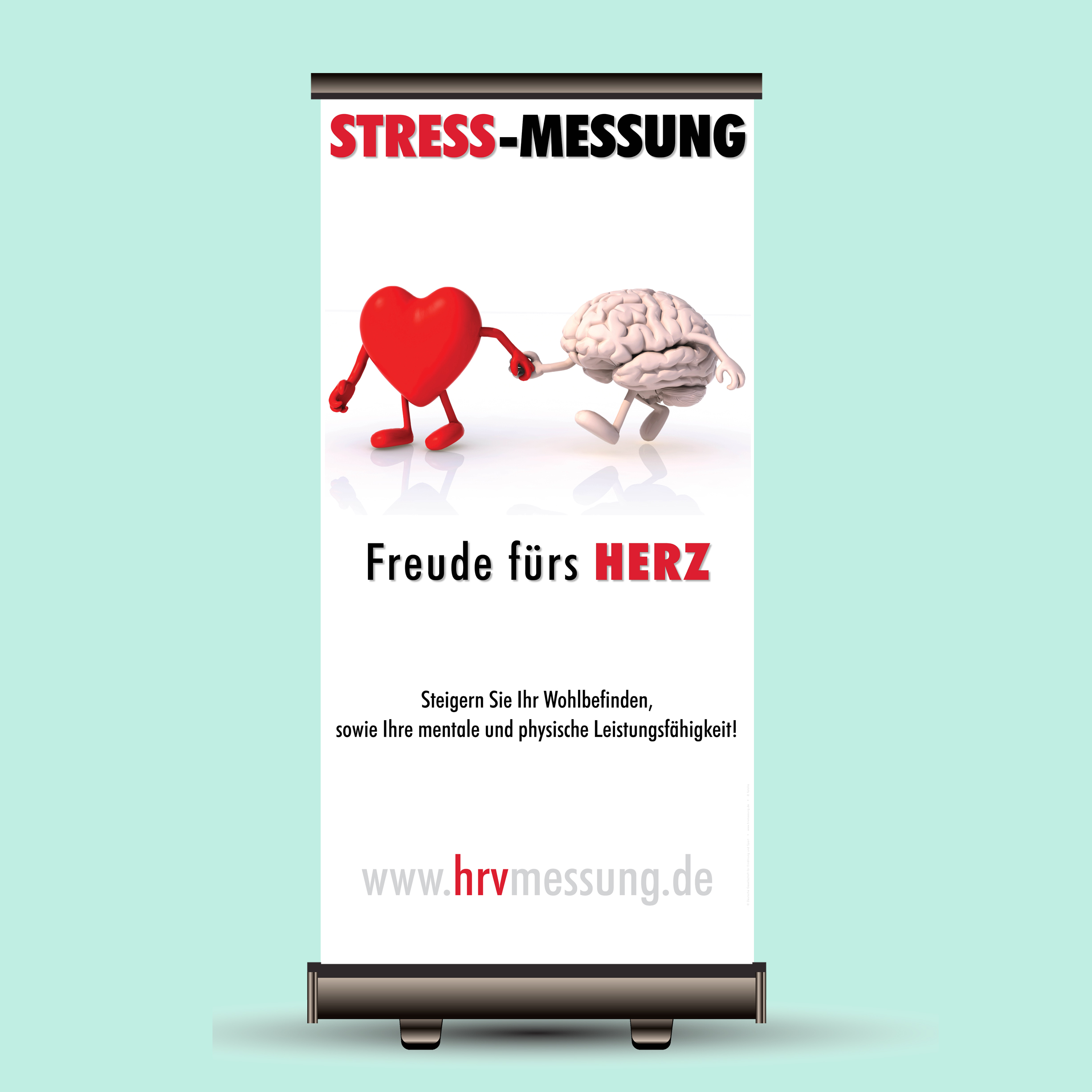 HRV Stressmessung Roll-Up Banner"Freude fürs Herz" 1m x 2m zum Ausrollen im Display