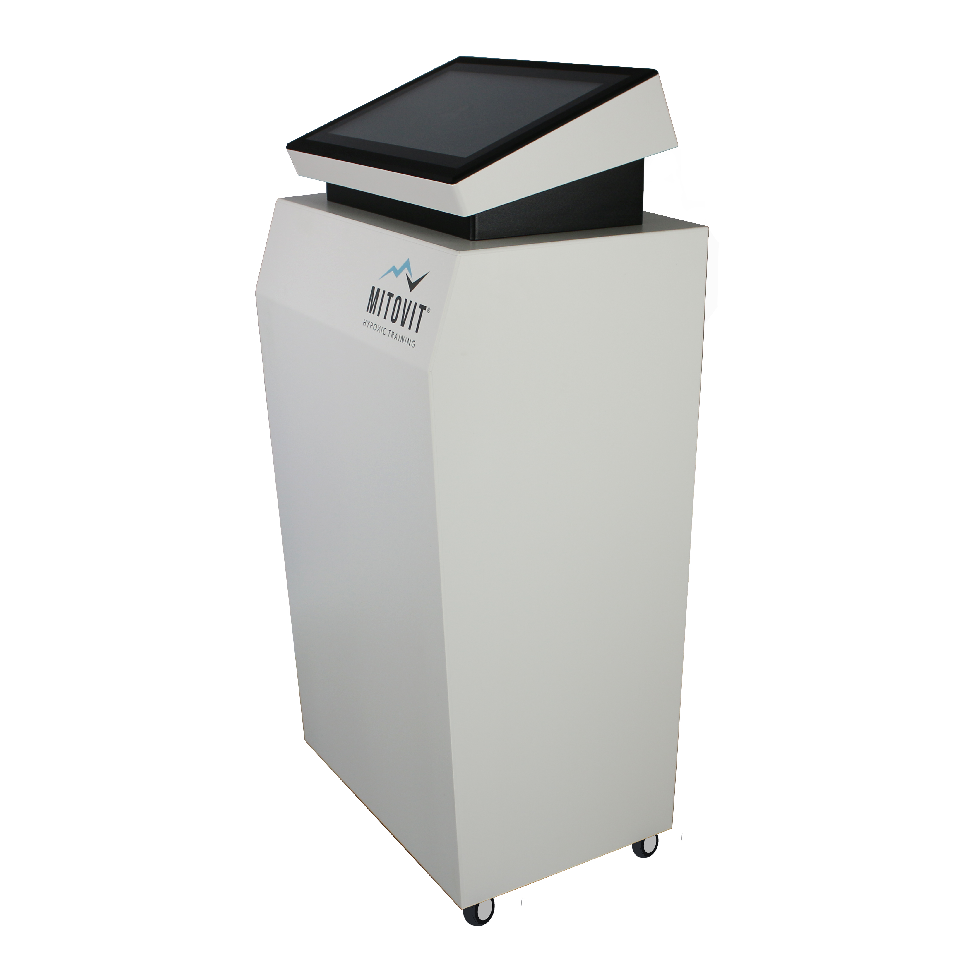 Bei MITOVIT handelt es sich um ein Intervall-Hypoxie-Hyperoxie-System zum professionellen Einsatz. Es bietet eine integrierte HRV-Messung mit Darstellung der parasympathischen Aktivität und ermöglicht eine schnelle visuelle Kontrolle des Trainingsverlaufs. Der MITOVIT besitzt eine intuitive Bedienoberfläche und ist dadurch einfach zu handhaben. Die Sauerstoffzufuhr wird automatisch angepasst. Das System ist mit zwei Pulsoximetern ausgestattet, die während einer Trainingseinheit parallel eingesetzt werden können. Die Trainingssoftware visualisiert Training und Trainingsverlauf. Das Interface verfügt über einen berührungssensiblen Bildschirm.