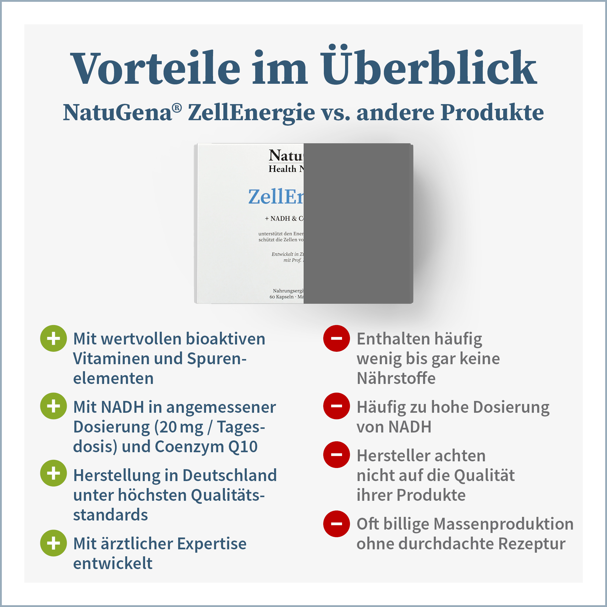 Produktinformationen "NatuGena - ZellEnergie + NADH & Coenzym Q10 60 Kapseln (1-Monats-Packung)"