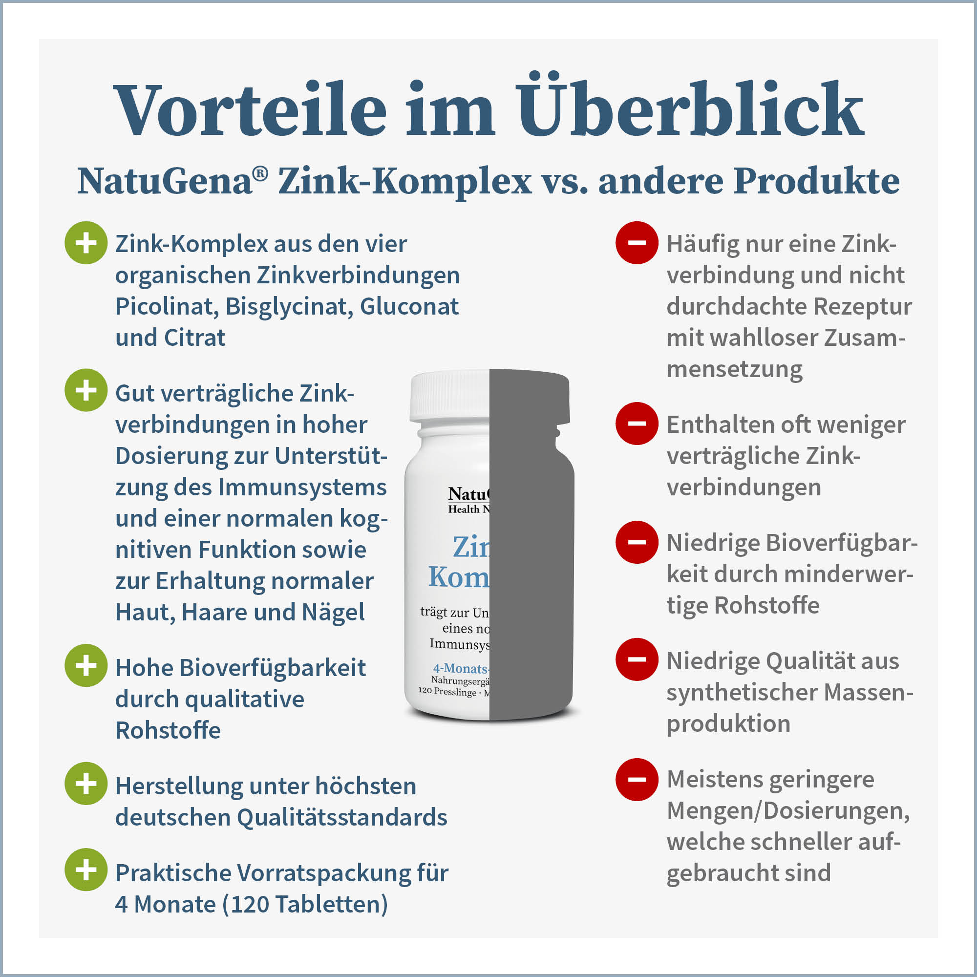 Produktinformationen "NatuGena - Zink-Komplex (Vierfachkombination) 120 Tabletten (4-Monats-Packung)"