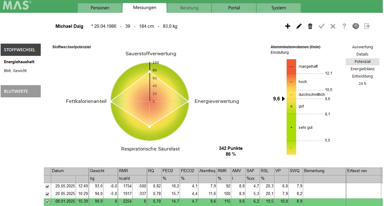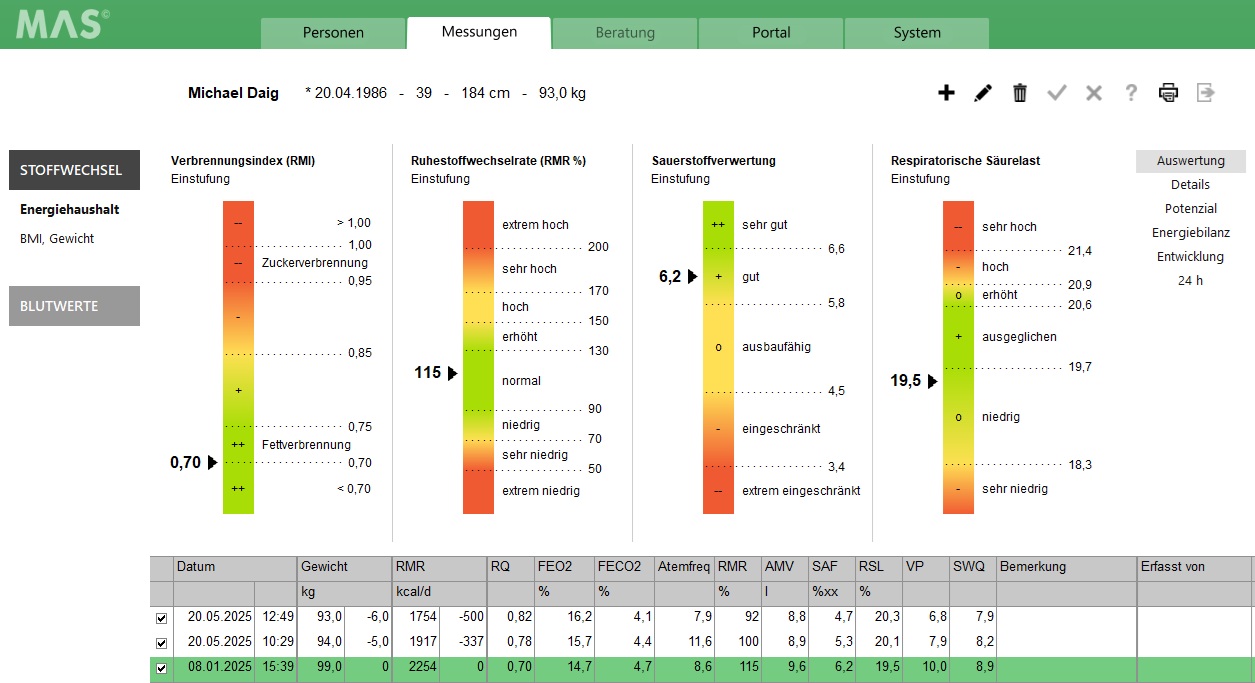 Software MAS Metabolic Analyse Software Auswertungssoftware für die Ruhespirometrie