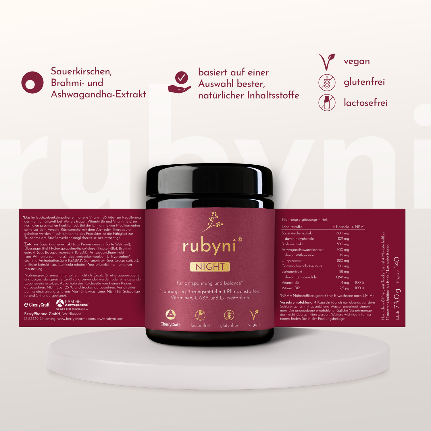 Produktinformationen "rubyni - NIGHT 140 Kapseln - für Entspannung und Balance"